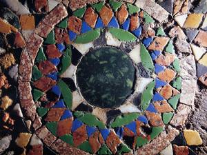 Je suis dans la Basilique San Marco, à Venise, sous les ors des voûtes qui retiennent tous les regards. Je préfère baisser la tête, les yeux rivés sur le sol et le sacré du pavement, son austérité, son abstraction méditative. Les rosaces, les carrés se répondent en un agencement savant. Mais toujours la douceur émouvante donnée par l’usure. Et toujours aussi, l’aléatoire : une tesselle rouge au milieu des noires, une lacune dans une composition. Cette géométrie imparfaite fait surgir l’émotion, la beauté pure.